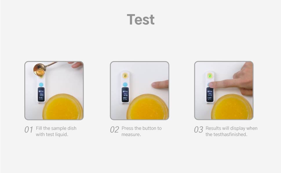 • Highly Accurate & Precise: Test sugar content in a range of 0-32% with ±0.1% precision and 0.05% resolution for reliable results every time.